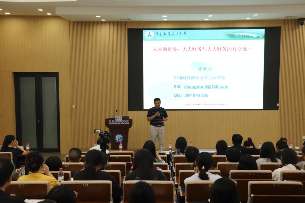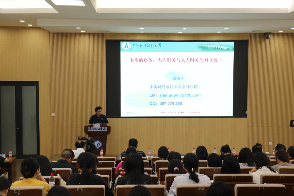 2025年5月16日下午,由中国会计学会、全国会计专业学位硕士研究生教育指导委员会主办,在线买世界杯平台经济与管理学院承办的“MPAcc会计名家公益大讲堂”在金盆岭校区经管大楼100报告厅举行。本次大讲堂邀请到中南财经政法大学张敦力教授,围绕“财务的未来:无人财务与人人财务的对立统一”展开深入探讨。经济与管理学院院长彭新宇及140余名师生参加了本次讲座,讲座由学院副院长王治主持。