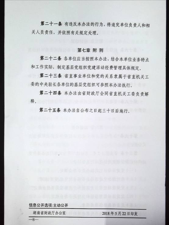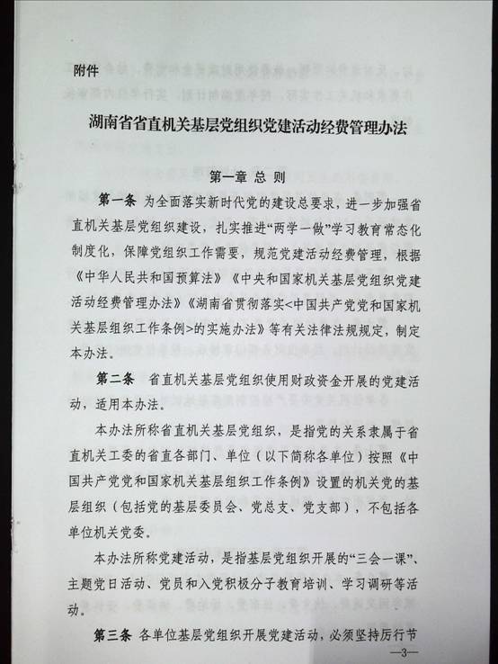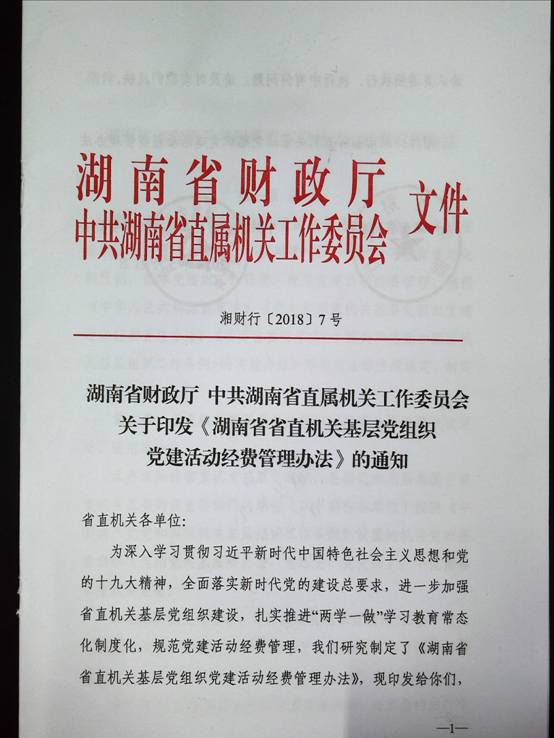 湖南省直机关基层党组织党建活动经费管理办法
