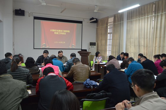 328日下午,计通学院在理科楼B103召开了2017年度党建工作会议。院党委委员、院长助理、各行政科室主任、各党支部书记及委员、各系(中心)主任参加了会议。院党委副书记王任飞主持会议。