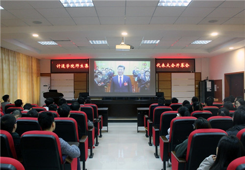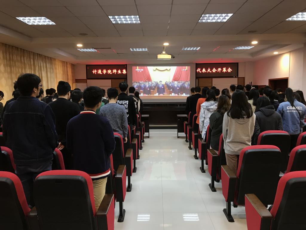 1018日上午9:00,中国共产党第十九次全国代表大会在北京人民大会堂开幕。与此同时,计通学院没课的师生分别在理科楼B311B502、各系会议室集中收看了开幕会,家中有特殊情况无法赶来学校的老师也在家中收看了开幕会。大家怀着无比激动的心情观看十九大开幕盛况,聆听习近平总书记代表第十八届中央委员会向党的十九大作报告。