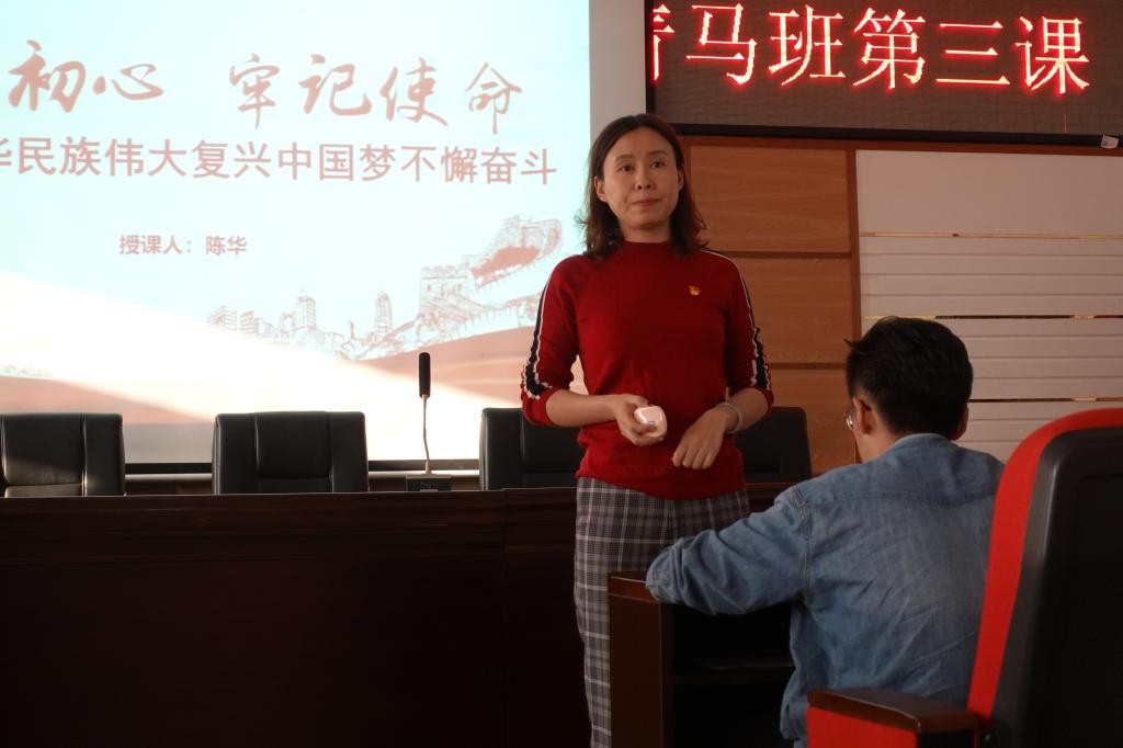 11月5日,计通学院于云塘校区理科楼B311举行了第十期“青马班”第三次课程——“不忘初心、牢记使命”主题教育。本次活动由计通学院党委副书记陈华担任主讲。组织部副部长陈丽芳担任主持。院团委书记潘枝花,研究生辅导员易亭亭出席。计通学院团委学生会,院研究生会全体成员参加。