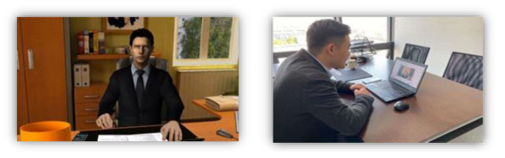 5、考生需要采用双机位模式参加面试,一台设备从正面拍摄【主机位】,另一部电脑或手机摄像头从考生后方成45°拍摄【辅机位】,要保证考生面前屏幕能清晰地被面试专家组看到。