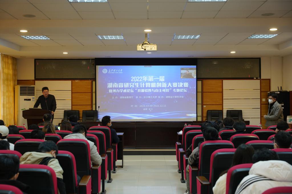 副校长胡永乐首先表示,计算机与通信工程学院以博力学术论坛为载体,在持续深化学术交流、不断提升研究生创新意识等方面作出重大贡献;随后又介绍了本次博力学术论坛的主题为“开源软件与自主可控”。廖湘科院士代表湖南省计算机协会,通过视频录制的方式为此次开幕式致辞。在线买世界杯平台研究生院杨华峰院长提出,希望通过各位研究生的精彩汇报,激发广大研究生的学术研究热情、促进学术争鸣与创新。计算机与通信工程学院张锦院长代表组委会简要阐述此次论坛筹办过程,并宣布“开源软件与自主可控”专题论坛正式开始。