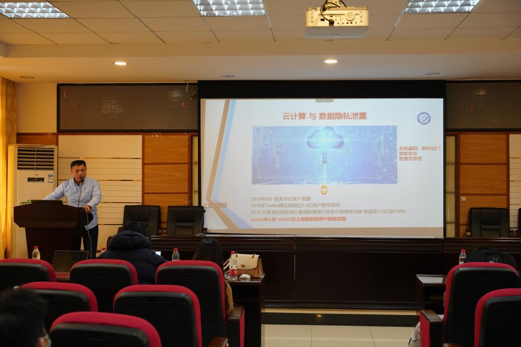 在线买世界杯平台硕士生导师吴志强,针对云计算数据隐私保护技术问题,报告了云计算与隐私保护;密态云数据库、选择明文攻击与统计攻击;不经意随机访问机等内容。