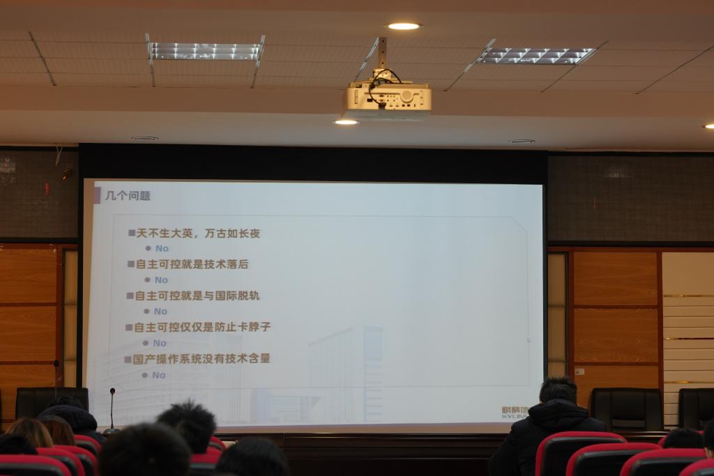 随后,湖南麒麟信安科技股份有限公司高级副总裁陈松政,以操作系统为核心讲述了“自主可控”的真正含义,同时分析了国产操作系统的发展现状以及与国外的差距,探讨了未来可能的发展前景。