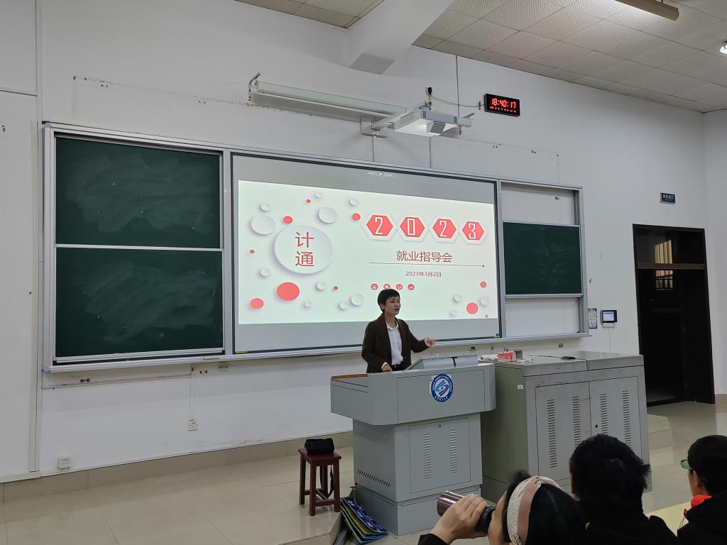 为扎实推进2023届毕业生就业指导工作,让毕业生明晰当前就业形势,把握就业机会, 3月2日晚18:00,计通学院在综教B102召开2023届毕业生春季就业动员大会。会议由郑国义主持,党委副书记王觊婧、就业专干聂静出席,全体2023届未就业毕业生参加会议。
