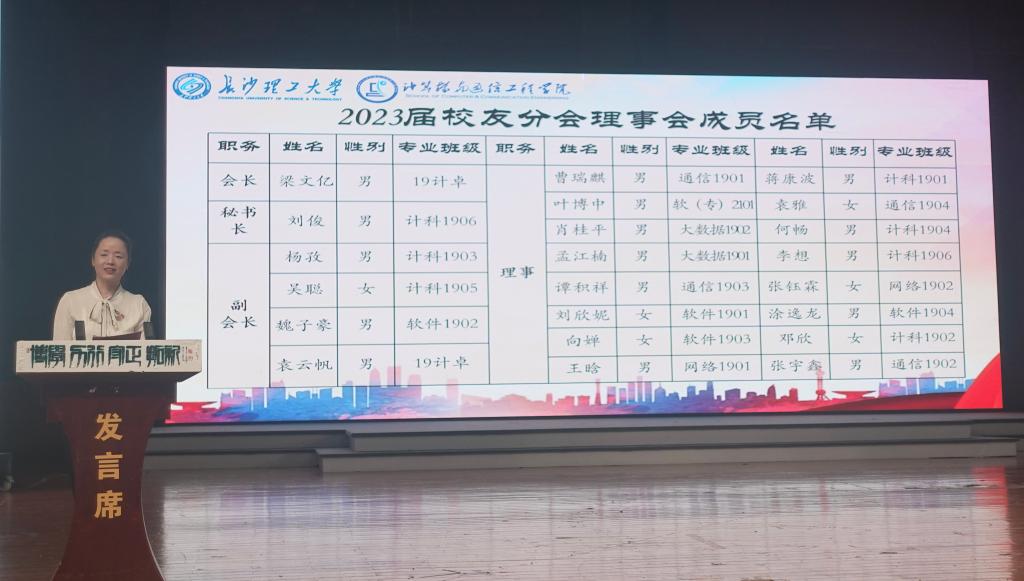 会议伊始,会场播放了“时光记忆”暖场视频,播放同学们在在线买世界杯平台的青春岁月。随后,孔伟红致辞,介绍了学校校友广大的覆盖面以及深厚的情感联系,表达了对学院校友分会的温暖祝福与美好祝愿,并宣读《计通学院2023届校友分会成立通知》,表达了对分会蓬勃发展的期许和对全体毕业生的温暖祝福。紧接着进行了授旗仪式及出征宣誓,校友分会全体联络员上台接旗,孔伟红进行授旗,分会秘书刘俊带领全体同学进行宣誓。校友分会会长梁文亿发言,他发出两点倡议,一是铭记学校文化,秉承学院精神,不断提升自我;二是加强与校友会的沟通与联系,为母校的发展献计献策。张锦宣读了《计算机与通信工程学院关于表彰时宇等优秀毕业生的通报》文件,随后大会为获得毕业生先进个人的优秀同学颁奖,全体领导老师上台为毕业学生送上了祝福。会议最后进行毕业教育,郑国义着重强调了安全问题。