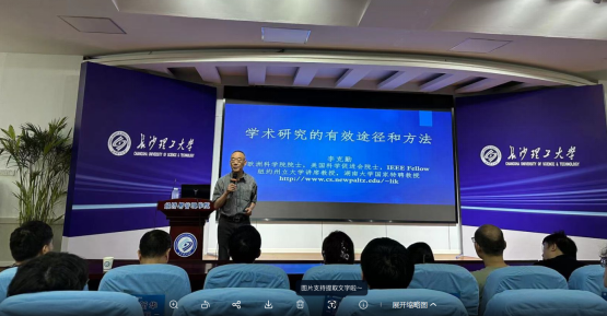 2023年6月13日下午,计通学院计算机类专业前沿系列名师专题讲座在金盆岭校区12教200报告厅举行。本场讲座由欧洲科学院院士、美国科学促进会院士、IEEE Fellow、纽约州立大学终生讲席教授、湖南大学信息科学与工程学院国家特聘教授李克勤主讲,计通学院院长张锦主持,现场师生达200余名。