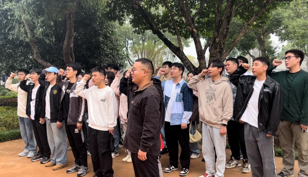 参观结束后,2022级研究生党支部在肖劲光大将故居前举行了庄严的宣誓仪式。全体党员面对党旗,重温入党誓词,庄重宣誓要铭记革命传统、坚守理想信念,坚定不移地为祖国的繁荣昌盛和强军强国目标贡献力量。