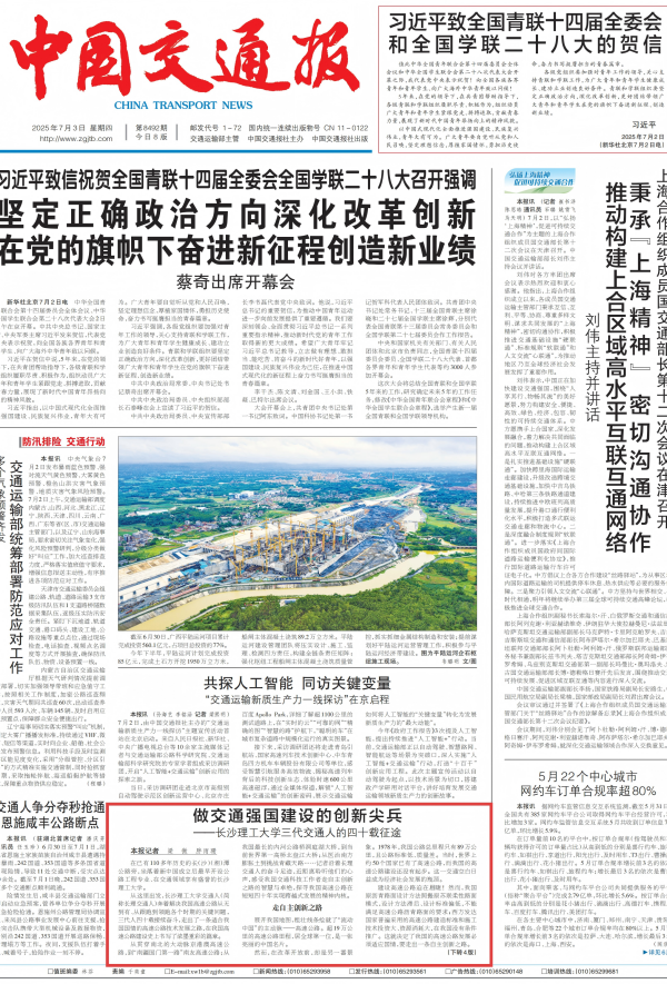 《中国交通报》头版+整版报道世界杯官网三代交通人的四十载征途