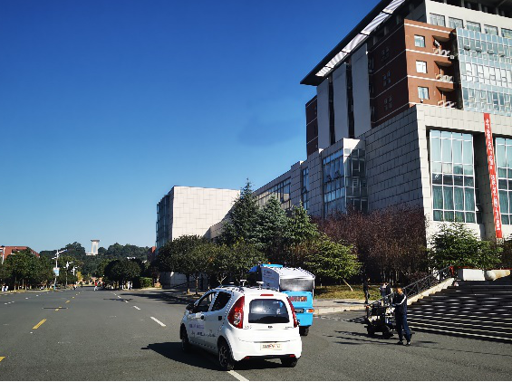 图5 智能网联汽车自动避障演示 图6 智能道路与车路协同校园示范线路演示