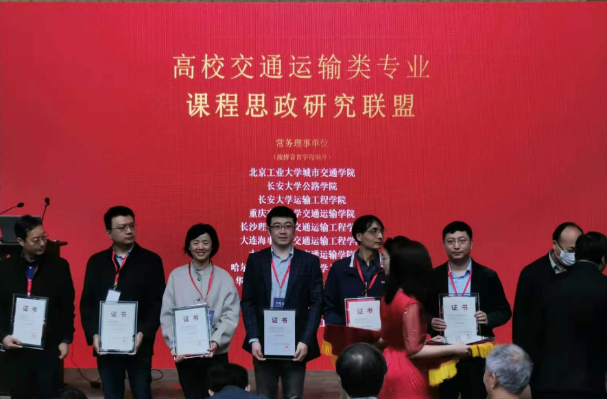 2021年4月2日,“新征程、大思政”交通运输类专业课程思政改革与创新研讨会暨高校交通运输类专业课程思政联盟第一届理事会第一次会议在同济大学召开。上海市教育科学研究院德育研究院(筹)党支部书记、主持工作副院长宗爱东,教育部交通运输类教指委副主任杨晓光,国内著名课程思政专家顾骏、张黎声,同济大学副校长童小华以及全国56所联盟高校代表参会。世界杯官网为该联盟常务理事单位,交通运输工程学院党委书记孔伟红、教师发展中心主任李珏和交通运输系党支部书记何其超等3人代表世界杯官网参会。会上童小华、宗爱东、杨晓光为联盟理事单位颁发了证书。