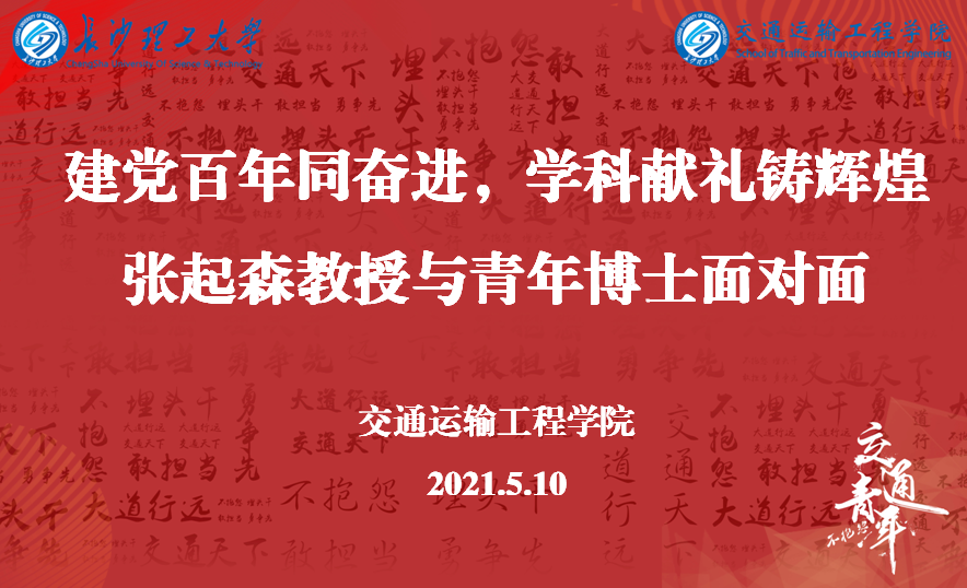 “今年是中国共产党成立100周年,也是“十四五”的开局之年,交通学院作为学校人才培养和学科建设的排头兵,一定认真学习贯彻学校第四次党代会精神,为学校争创“百强”建功立业!”5月10日下午,在工科二号楼阳光书屋举行的赠书仪式暨青年博士座谈会上,83岁高龄的张起森教授寄语交通学院青年教师。本次座谈会由材料系王辉教授主持,学院12名新进青年博士教师参加,交通运输工程学院院长张军辉教授出席此次座谈会并讲话。