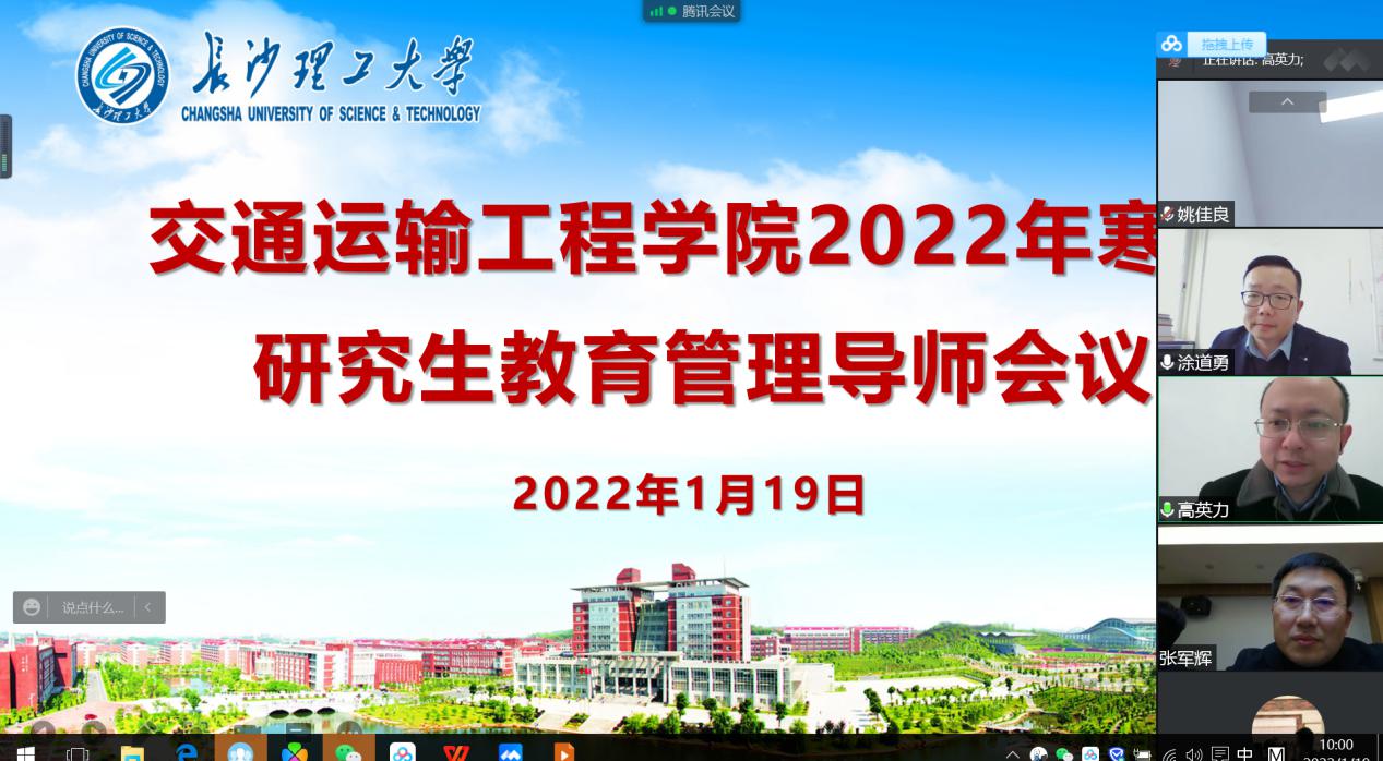 1月19日上午,交通学院召开研究生导师线上会议,部署寒假期间研究生教育管理和疫情防控工作。交通学院党委书记刘朝辉、院长张军辉、党委副书记涂道勇以及全体导师参加会议,会议由副院长高英力主持。