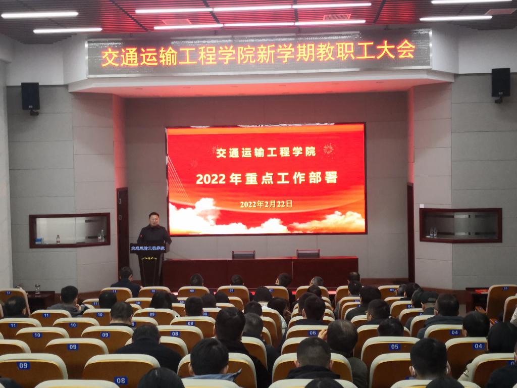 大雪纷飞,寒风刺骨。2月22日下午,交通学院全院教职工克服天气寒冷的困难,以饱满的热情在工二B-301报告厅召开新学期重点工作部署会,会议由院党委书记刘朝辉主持,全院教职工参加。