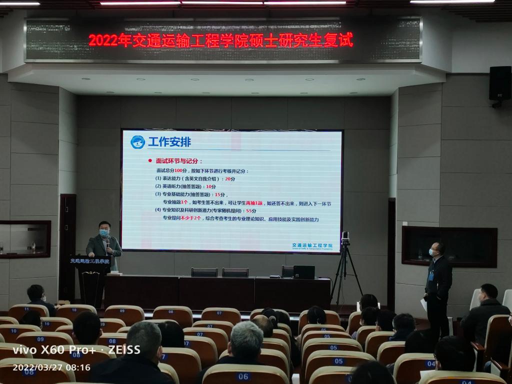 2022年3月26-28日,在疫情升级的大环境下,在线买世界杯平台交通运输工程学院2022年硕士研究生招生复试工作有条不紊地顺利开展,圆满完成一志愿招生复试工作。