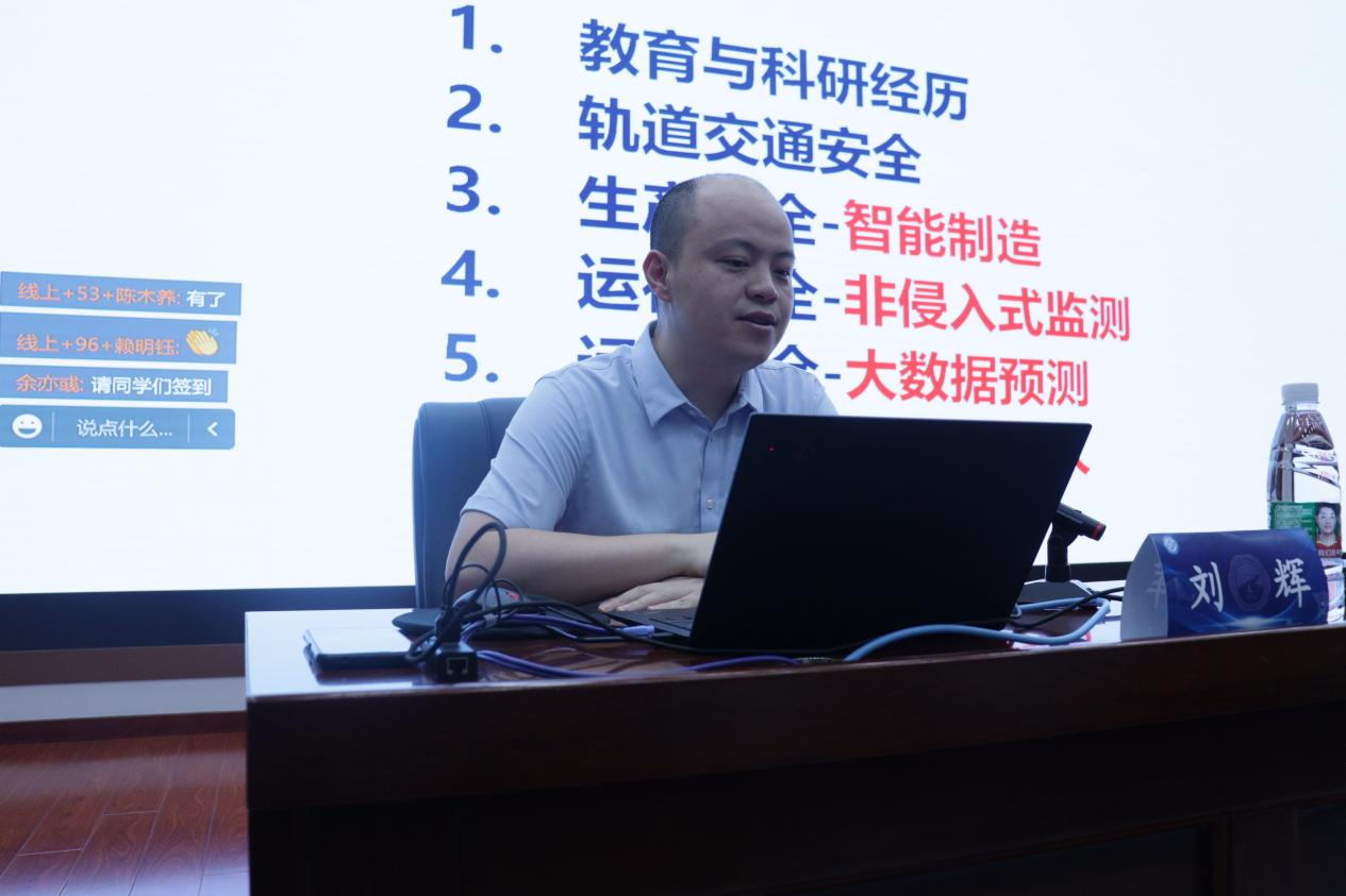 7月15日上午,中南大学的刘辉教授应邀作了“轨道交通装备非侵入安全预测关键技术”的主题授课。本次授课由在线买世界杯平台高英力教授主持。