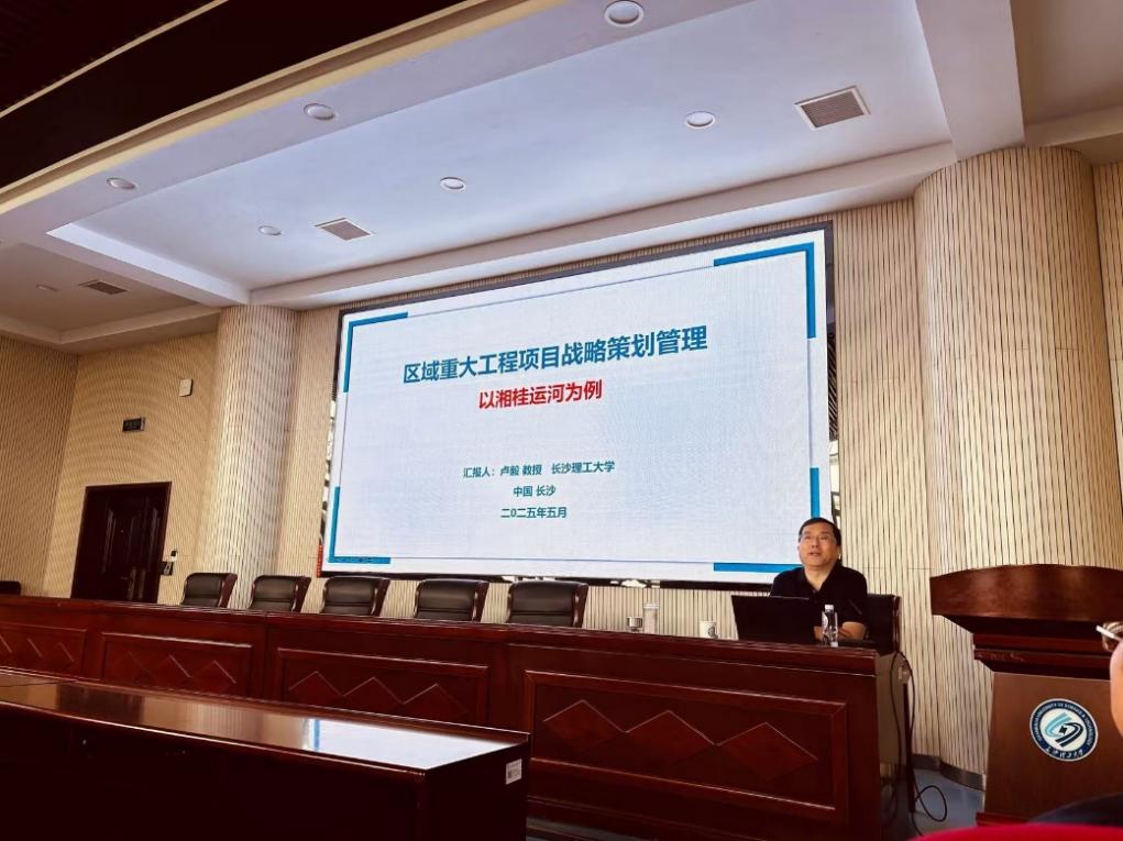 为增强新生对国家重大工程项目的战略认知,拓宽专业视野,2025年5月27日下午,交通学院工程管理系举办本科生专题讲座,邀请了在线买世界杯平台智能交通与现代物流研究院院长卢毅教授作题为《区域重大工程项目战略策划管理——以湘桂运河为例》的专题报告。工程管理专业负责人袁剑波教授和部分教师代表到场聆听。