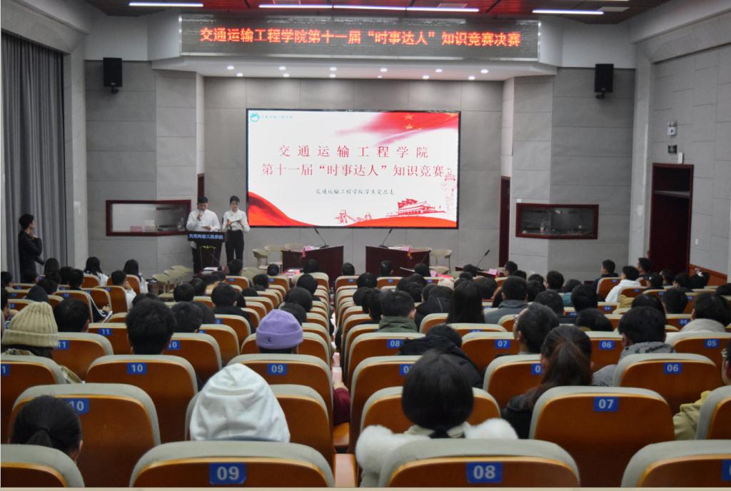 12月28日晚,青春心向党,时事伴我行”之交通学院第十一届“时事达人”知识竞赛决赛于云塘校区交通科技报告厅正式拉开帷幕,校关工委常务副主任王乃厚、交通学院党委书记孔伟红、党委副书记涂道勇、学工办全体辅导员出席。