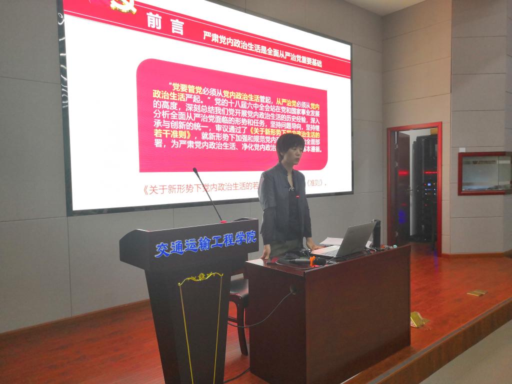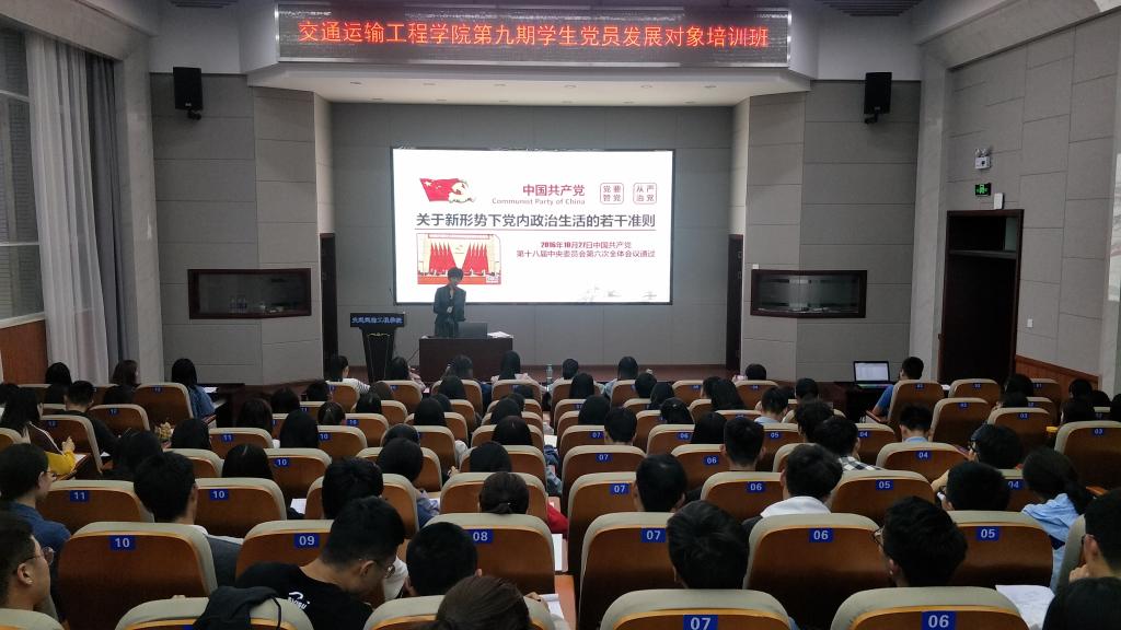 5月9日晚7:00,交通学院第九期发展对象培训班第二次党课培训在工科二号楼B-301室进行。文法学院党委书记孔伟红为本次培训授课,主题为《关于新形势下党内政治生活的若干准则》,第九期发展对象培训班全体学员参加。