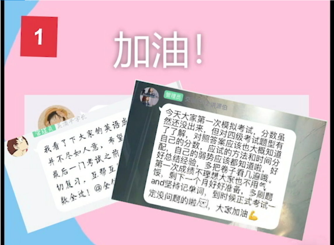 本次活动,前期向老师、所下班级同学收集各类素材,通过“长沙理工交通青年”公众号进行了三期推送展示:下班与我们不能不说的秘密、云中千份锦书来、下班秘籍,主要介绍了下班在所下班级中在思想引领、学习和生活上的指导,以及和2019级同学们相处的共同美好回忆。在一张张照片、一封封信、一幅幅画、一个个视频中,展示了下班们在2019级同学中的引领作用及深厚情谊。通过下班们和2019级同学的留言互动,更加感受到了下班对所下班级同学无微不至的照顾与辛勤付出。