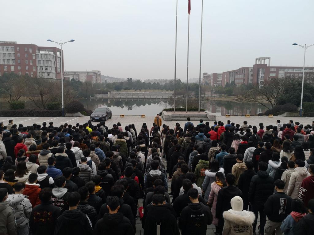2月25日,新学期的第一天,交通学院在图书馆前坪举行升旗仪式。院党委副书记田上、学工办辅导员马玉文、肖敏强、彭笠、汪招霞、曾凯、刘津洋,院分团委、学生会全体成员、各党支部成员、17级交通运输专业全体同学参加了本次升旗仪式。