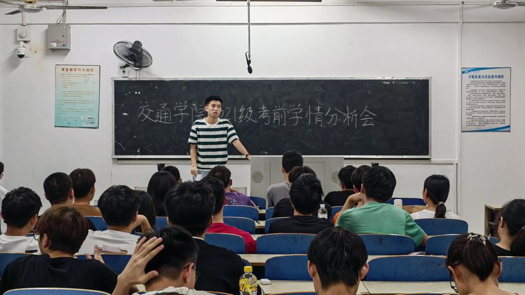 6月9日晚7点,交通学院2021级于金13教102室召开2021-2022学年第二学期考前学情分析会,年级辅导员史亚杰及各班班长、团支书、学习委员和年级分会成员参加会议。