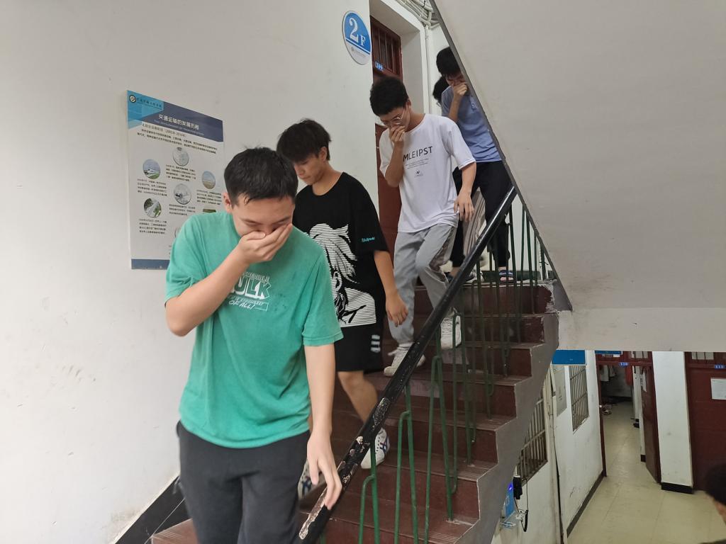 6月19日17时许,在线买世界杯平台金盆岭校区东苑五栋三单元响起一阵急促的警报声,警醒着人们:“宿舍楼栋”发生火灾,大家应保护好自己,速速走安全通道撤离!随着“立即撤离”指令的下达,消防疏散演练正式拉开序幕,各楼层学生临危不乱,有序、迅速地按照消防逃生路线,遵循火场逃生疏散演练技巧,用衣角捂住口鼻弯腰低姿快速撤离至楼栋前坪安全区域。随后由工作人员迅速整理队伍,清点人数,并层层向上级汇报,楼栋160余名学生全部安全疏散,整个演练活动快速、安全、有序,共计用时45秒。