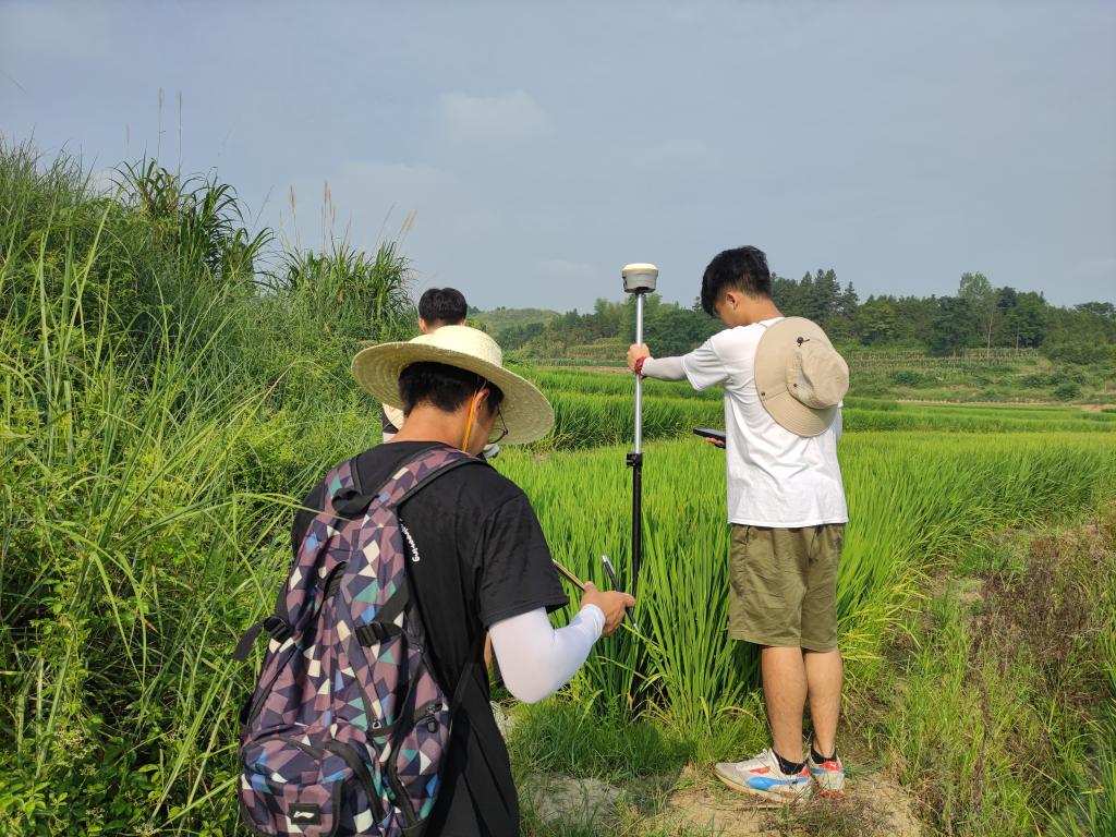 7月19日上午,实践团队应村支部的要求,测绘任务临时增加了一条大概在500-600米之间的目标水渠。实践团队分工合作,配合默契,共测绘标点538个、绘制草图12张。下午,在范志勇老师的带领指导下,实践团队根据新的测绘数据、草图以及当地地形,最终在电脑上绘制出沟渠及其周围的地形图。