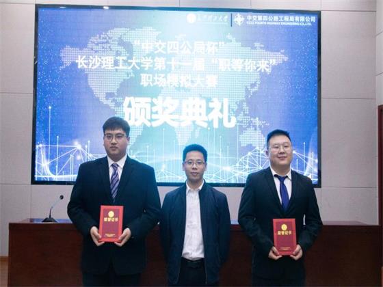 据悉,此次比赛吸引来自12个不同学院248人参加初赛,60人进入复赛,15人成功晋级决赛。决赛分为五分钟个人展示时间及评委点评两个环节。首先,决赛选手以PPT、VCR等形式展现个人专业能力与综合素质,并对自己所应聘职位进行模拟面试。随后,评委就选手们的表现进行点评。其中,王煜坤副书记指出,在个人展示过程中,党员、学生干部要敢于亮自身份,并注意自我介绍的侧重点,精简个人简历,重点突出与应聘职位的匹配性。江勇先生强调,选手们应结合所学专业、兴趣爱好及性格特点选择与之相匹配的岗位,充分认知专业、行业、职业、事业的关联性,要把从事工作当成毕生的事业来做,而不仅是谋生的职业。接着,李娜副处长进行评委总结点评,她首先对中交四公局在初赛、复赛、决赛过程中的大力支持表示衷心的感谢,充分肯定选手们的精心准备和精彩表现,在简历制作、自我介绍、面试问答三个方面给予专业性的指导意见及优化建议。经过最终的综合评比,工管1803班韩宇、道桥1805班刘禹荣获一等奖,汽机学院测控1802班田永琪、国际学院土木2003班潘杰、工管1803班戴可荣获二等奖,经管学院人资1802班黄立中、工管1801班龚晓斌、交工1702班欧青瓒、外国语学院英语1801班冯佳晨荣获三等奖。