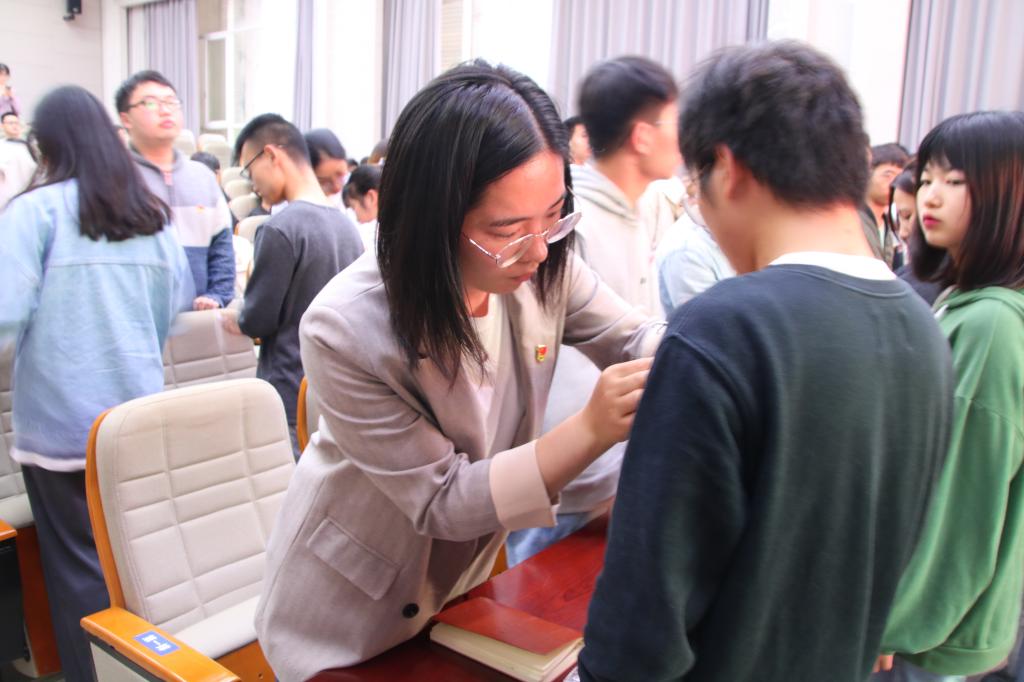 5月18日晚,交通学院新党员授徽仪式暨预备党员培训班开班仪式于交通科技报告厅举行。学生党总支副书记、党校秘书肖敏强出席,学生党支部支委代表、第二十三期预备党员培训班全体学员参加。
