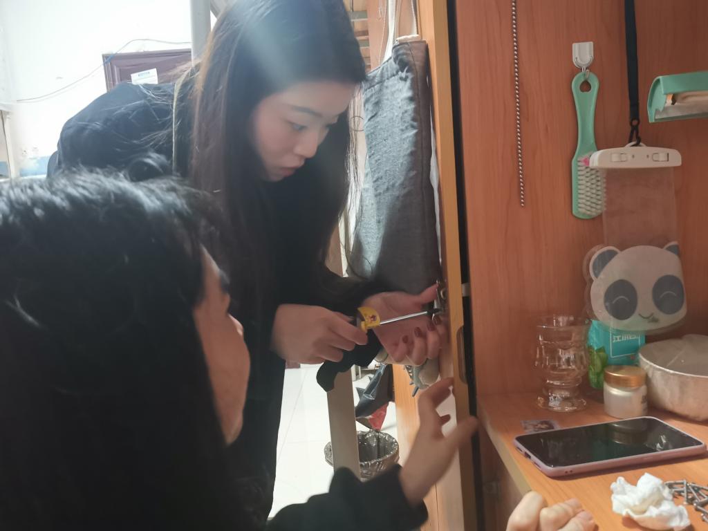 活动过程中,义务维修队深入每间报修宿舍提供维修服务,主要为同学们解决桌椅损坏、柜门无法关闭、抽屉运作故障等问题,本次义务维修活动共计维修130余件寝室物品。义务维修队成员李志远分享道:“非常荣幸能够加入学生社区义务维修队这个集体,队员们团结协作,为同学解决实际困难。同学们的积极配合,也促使维修工作开展得顺利有序。但我的维修能力还有待提高,有些较为简单的问题,例如柜门合页的更换,花费了较长时间才安装好。从此次活动中,我感受到了帮助同学的乐趣,我觉得非常充实,很有意义,我希望今后有越来越多的同学能够加入我们!”