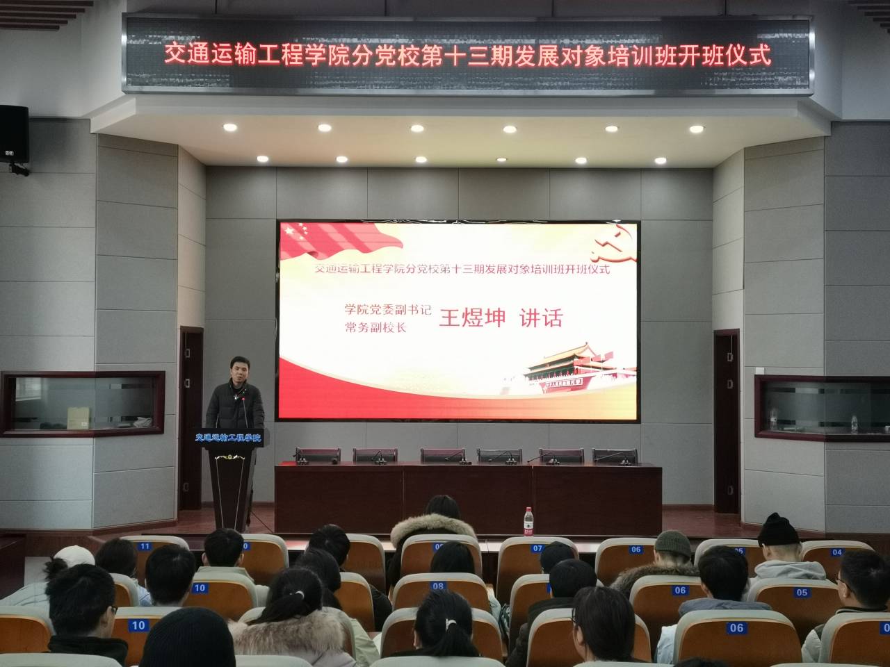 1月4日下午,交通学院分党校于工二B301举行第十三期发展对象培训班开班仪式。交通学院分党校常务副校长王煜坤、党校秘书肖敏强与会,第十三期发展对象培训班全体学员参加。
