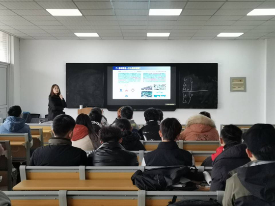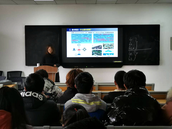 讲座开始后,邢璐用简洁易懂的语言讲解车路协同的各组成部分的功能和主要作用,并从车辆、道路及安全评价方法等方面普及交通安全和安全预警的相关知识,同时还详细介绍交通前沿科技和交通安全领域的相关运用。