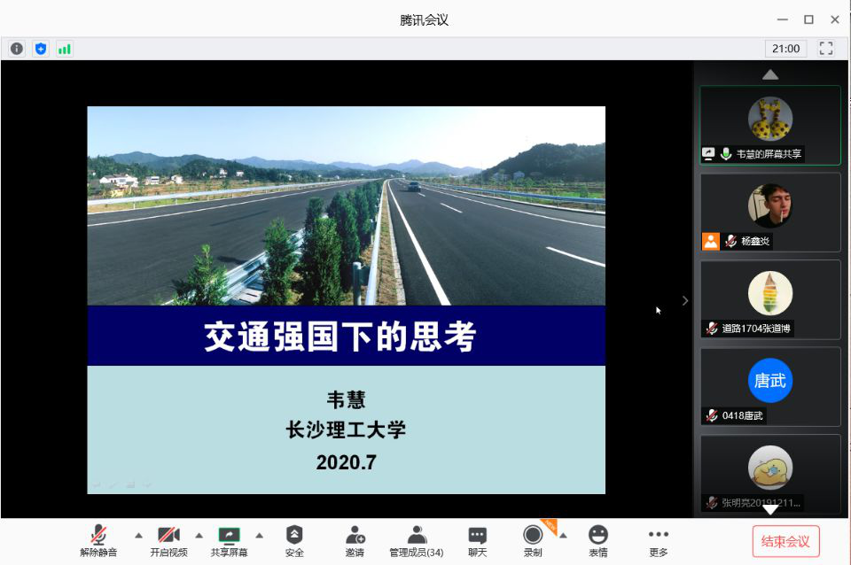 7月11日晚,道路1704班组织召开了线上学习交流活动。交流活动邀请了班主任韦慧老师和长安大学硕博连读学长张明亮参加。