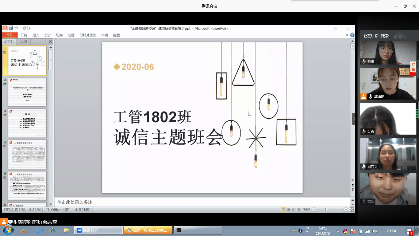班会开展过程中,同学们通过观看学习“金融知识进校园”诚信征信主题宣讲PPT,进一步了解了征信知识、金融知识。此外,同学们围绕“诚信青春,筑梦启航”主题,对当今社会中的有关“诚信”热点话题进行了分析讨论,并就失信者心理和失信原因深入探究,明确了失信问题的严重性。