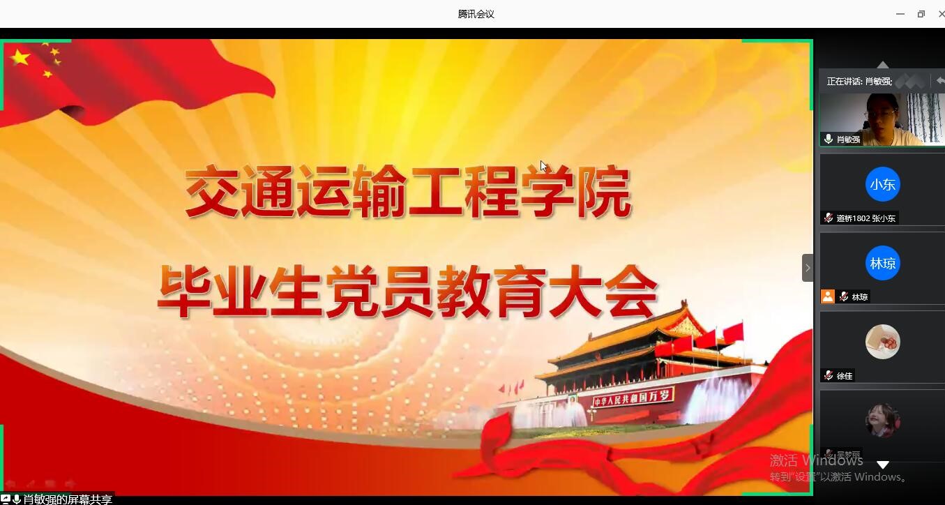 6月5日下午,交通学院通过腾讯会议,在线上开展了毕业生党员教育大会,全体毕业生党员参加,党建辅导员肖敏强主持。