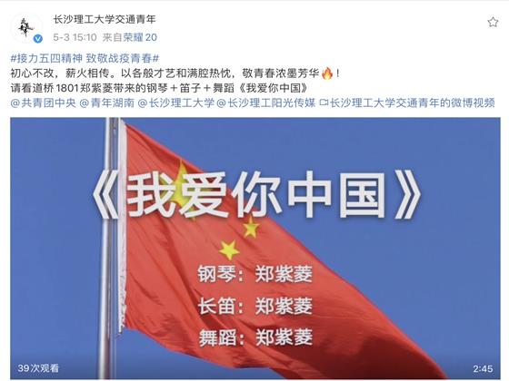 据悉,除此活动外,交通学院还在“五四青年节”来临之际,举办了其他一系列五四专题活动:在2017、2018以及2019级三个年级中,以团支部为单位组织召开了“我理解的五四精神”主题班会,学习抗疫中的先进事迹与时代楷模,并进行了相关的线上宣传,共计54个班级,1816人参与;通过制作“H5战疫青春手册”回顾交通青年们的战“疫”故事,约2000余名交通学子激情接力转发;各团支部利用官方微博及官方QQ开展以“接力五四精神,致敬战疫青春”为主题的告白祖国活动,用文字表达对祖国的感激与热爱。