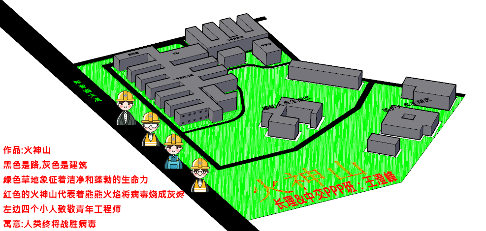 不仅如此,交通运输工程学院还将专业实践与“五四”青年节要素相结合,创新活动形式,鼓励长理&中交联合培养班全体学员利用所学的BIM或CAD知识技术,以重点工程项目为背景,创作心目中的“工程青年”形象。截止4月30日,联培班学员共提交了60余幅生动活泼的“工程青年”形象作品,有的设计了“火神山+工程青年”形象,有的在作品中融入了“一带一路”元素。在这些作品的设计过程中,不仅能有效锻炼学生专业技能,同时也让学生充分感悟了新时代青年精神、青年价值与青年力量。