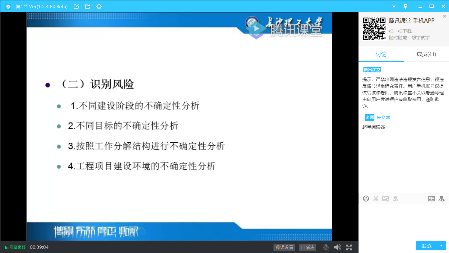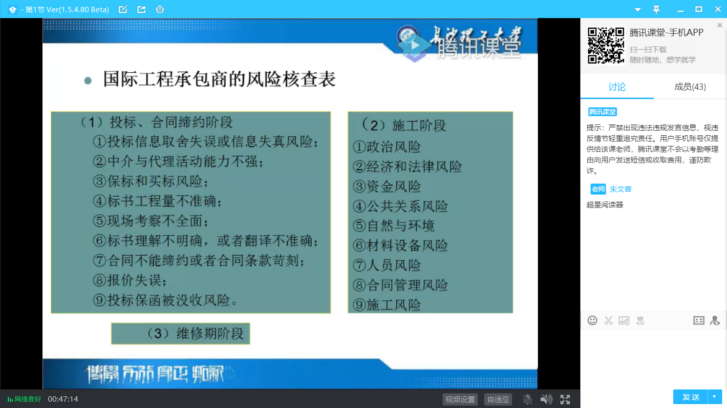 3月15日上午,中国交建2020届PPP联合培养班通过腾讯课堂APP线上开授《工程项目与保险》课程。课程由朱文喜老师讲授,PPP班全体学员共同参与。