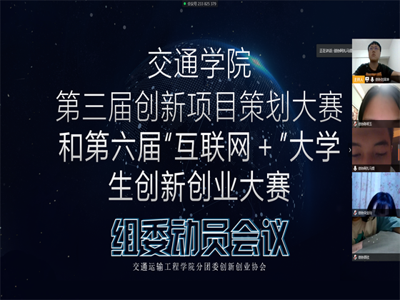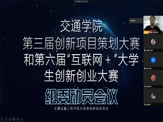 3月28日晚,交通学院分团委创新创业协会召开第三届创新项目策划大赛及第六届“互联网+”大学生创新创业大赛线上动员会议。此次会议由创新创业协会成员刘泽坤主持,2018级、2019级各班组织委员及创新创业协会全体成员与会。