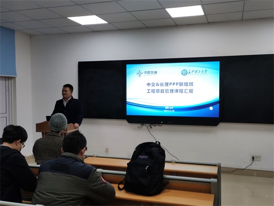 2019年11月30日晚19:00,中国交建2020届PPP联合培养班在云塘校区工科二号楼B602组织开展《工程项目管理》课程汇报。本次汇报由班长赵贺磊主持,全体学员出席。
