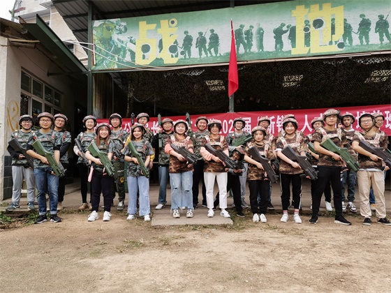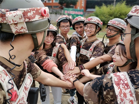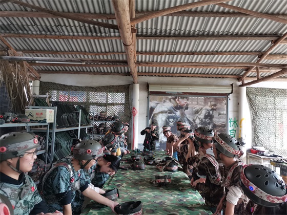 活动伊始,全体学员进行热身游戏。“活龙活现”比划猜词、拔河比赛和团队“过河”等游戏,本着“友谊第一,比赛第二”的原则,旨在增强学员间的默契度与团结力,也为今天的真人CS团体战拉开了序幕。鲜艳的特战迷彩绿,炫酷的设备,学员们摇身一变成为了摩拳擦掌的野战战士,奔跑的身影,尽情的呐喊,仿真的射击,比赛现场瞬间热闹起来,敌我厮杀,灵巧闪躲,快速占领,一切都只为了一个目标——赢得比赛。比赛一共进行三轮,攻守各一轮,最后一轮每个队伍中有两个间谍,每一轮比赛大家都精密地部署、团结协作,最终猎狼者队赢得一局,西伯利亚狼队赢得两局。
