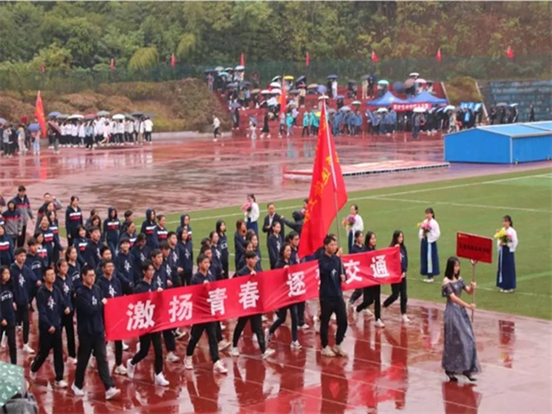 开幕式在敲鼓舞狮、《我爱你,中国》舞蹈、体育项目展示、《卡路里》舞蹈、《浪遏飞舟》与《我和我的祖国》大合唱中拉开了帷幕。随后,国旗手、运动员与各学院方阵入场。其中,交通学院方阵高喊着“大道行远,交通天下”的口号、迈着整齐坚定的步伐走向主席台。仪式期间,全体师生起立,面向国旗,举行了升旗仪式。接着叶泽副校长致辞,希望全体师生发扬体育精神并预祝校运会圆满成功。仪式最后,运动员代表与裁判代表进行宣誓,校运会正式开始。