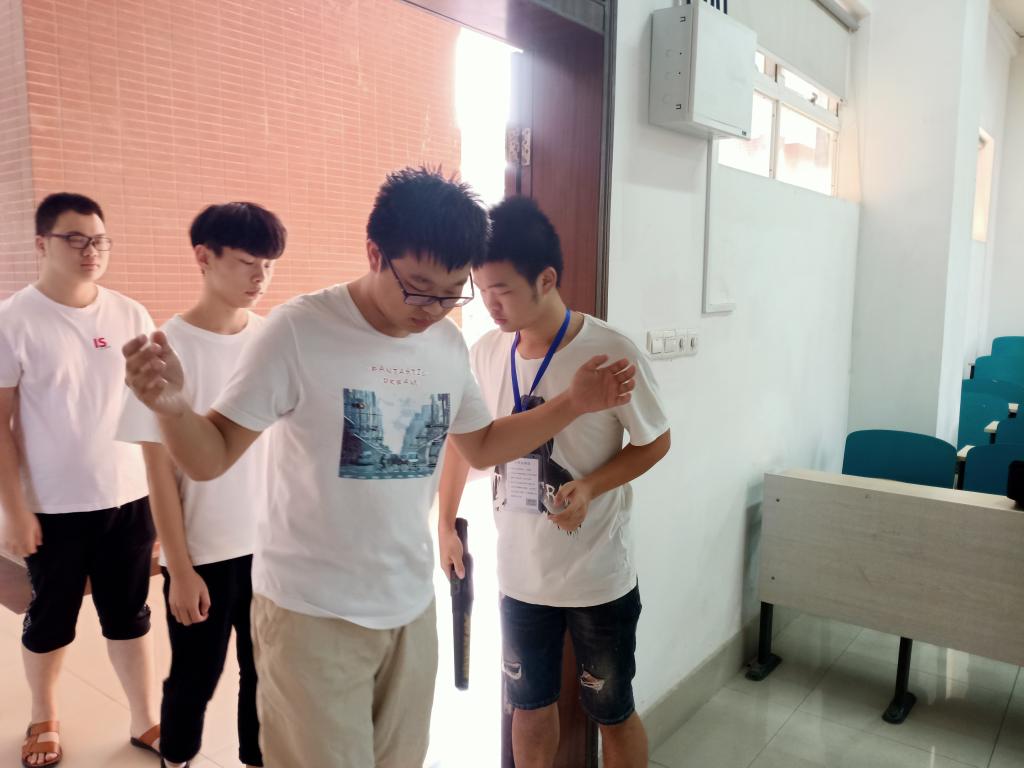 考前30分钟,各部门协考人员在教室休息室集合,由学习部同学发放协考器材、工作牌以及交代协考有关相关事项。考前15分钟协考人员抵达考场,按照要求组织在场考生进行了安检工作。安检过程中,协考人员真正做到了端正考风,严肃考纪。为确保迟到考生能进行安检,开考15分钟后协考人员离开考场。