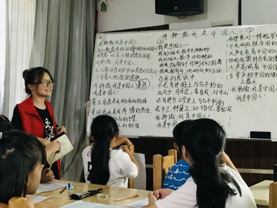 7月26日,在线买世界杯平台交通学院湘水支教团英雄岭分队展开了以“勤朗诵展爱国心,争环保为中华情”为主题的教学工作。