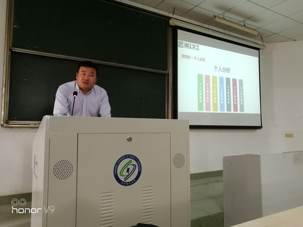 4月23日下午,交通学院2018级职业生涯规划课在金盆岭校区6教312教室开展。此次课程邀请到浙江交工金筑公司人力资源部经理夏玉文主讲。