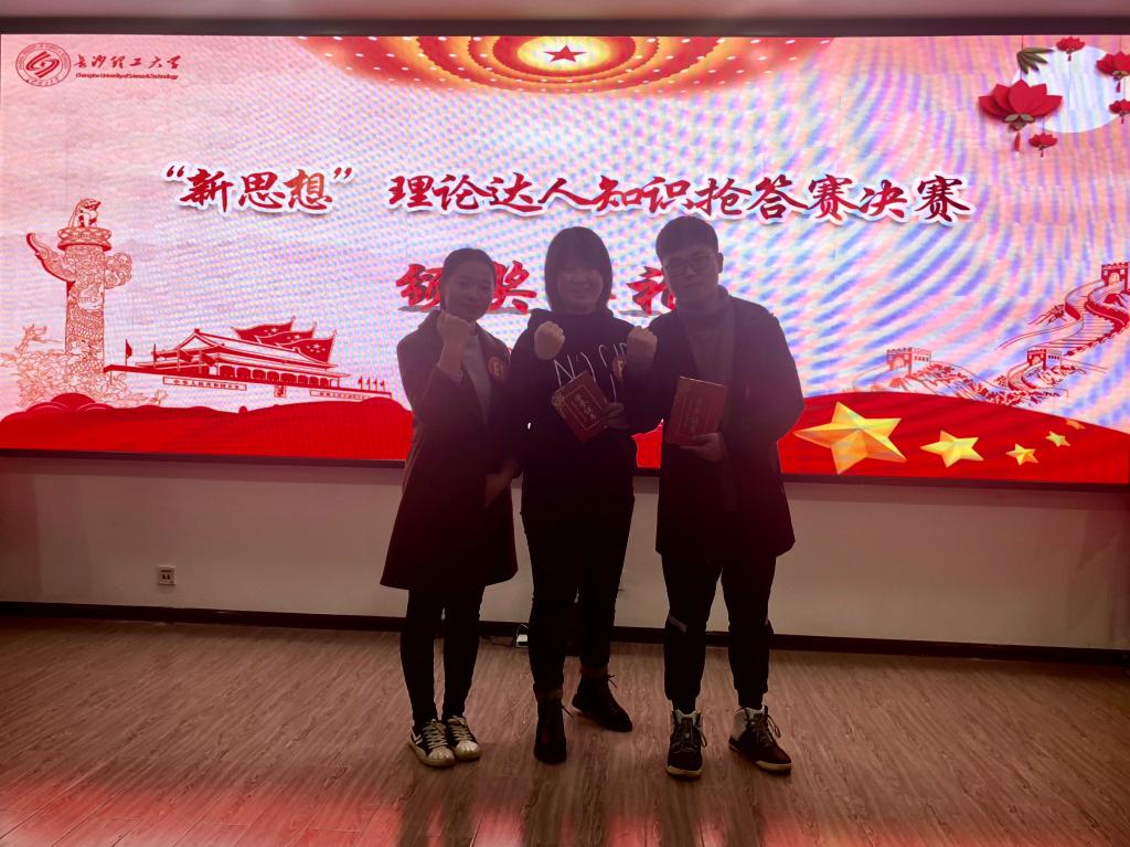 12月18日晚,“新思想”理论达人知识竞赛决赛于工三B319举行,学工部副部长霍向阳,宣传部副部长成华,马克思主义学院副院长梁建新,马克思主义学院副院长张明海出席担任评委,交通学院代表队冯梦兰、郭恢法、刘琅嘉参加比赛。