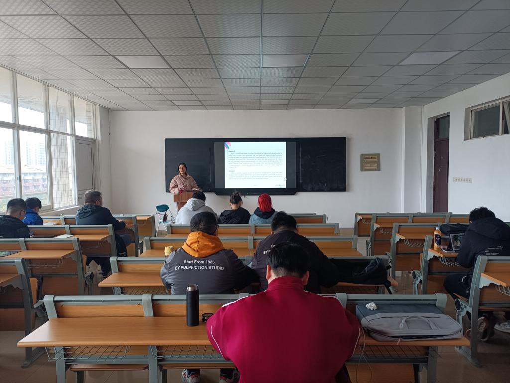 魏隽君紧跟着上一次课程的内容,播放了两个有关面试的视频,讲述了在面试中的Business Culture,鼓励同学模拟制作自己的面试发言稿。接着,魏隽君讲解了单元Company Presentations,在讲授了Warm-up,Listening Practice,Language Focus A,Language Focus B之后,将同学们分为四个小组,每组派出一位同学进行情景模拟发言,提升学生的课堂参与度。
