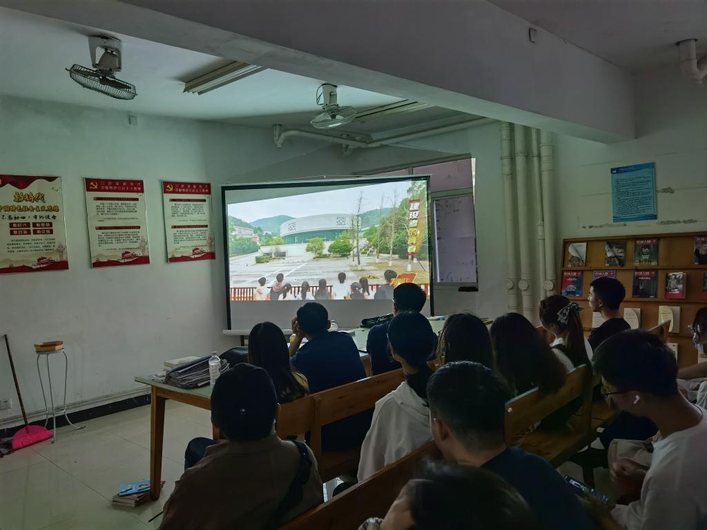 在分享会过程中,学生社区自管会工作人员还组织同学们进行团学知识抢答赛,回答正确者均可获得小礼品。场下的观众们踊跃回答,氛围浓厚。紧接着,学工办全体辅导员老师与同学们共同观看了《为时代育新人》第一集《青春之歌》,增强爱国主义情怀、传承红色基因。